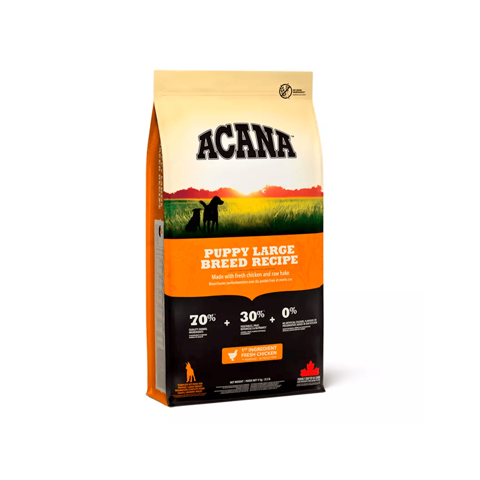 Hacemos cada bocado de ACANA Puppy Large Breed con fuente marina de Omega 3 a partir arenques silvestres New Brunswick para dar inmunidad y una piel y pelaje exuberante ? símbolo exterior de salud y la vitalidad de su cachorro.