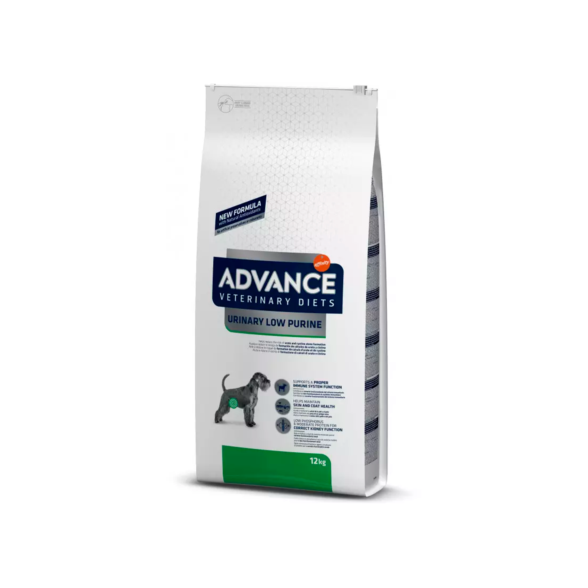 BAJO EN PURINAS: Ingredientes bajos en nucleótidos para prevenir la formación de cálculos de xantina derivados del uso del Allopurinol. Óptimo nivel de proteínas y Energía para asegurar el mantenimiento de la condición muscular y favorecer una respuesta inmunitaria eficaz. Proteínas con un perfil óptimo de aminoácidos que ayuda a reducir los residuos del catabolismo proteico. Fuentes proteicas de alto valor biológico: huevo, suero de leche, caseinato y proteína hidrolizada de soja.