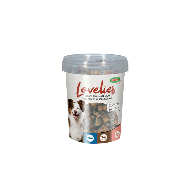 Cereales y subproductos vegetales, glicerina, carnes y subproductos animales (4% harina de ave, 2% harina de cordero), propilenglicol, aceites y grasas, pescado y subproductos del pescado (2,5 % aceite de salmón). Proteína 11,7 %, contenido de grasa 5,9 %, fibra bruta 1,0 %, ceniza bruta 2,0 %, humedad 18,0 %. Hierro (óxido de hierro (III)) E1 1.200 mg/kg.