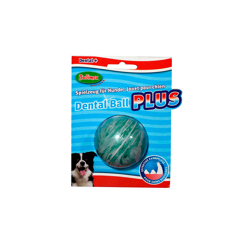 Pelota-dental es la forma más divertida de limpiar los dientes de su perro. Ayuda a prevenir la acumulación de placa dental y el sarro. El sabor especial a “menta fresca” elimina el mal olor y refresca el aliento mientras juega.