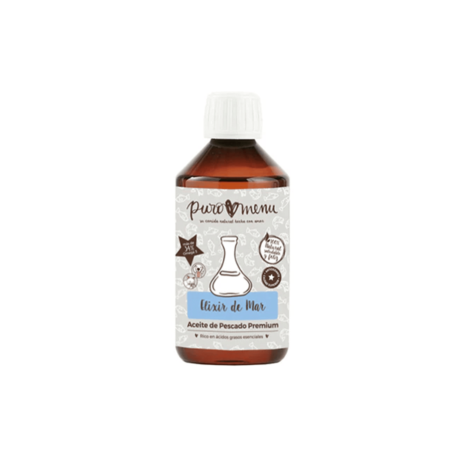 La suplementación con nuestro Elixir de Mar, un aceite de pescado de alta calidad, es recomendable en cualquier dieta, sea pienso, comida cocida o dieta natural en crudo. Aporta ácidos grasos Omega 3 esenciales para tu perro o gato, entre ellos los EPA y DHA, y ayuda a balancear la relación Omega 3 / Omega 6