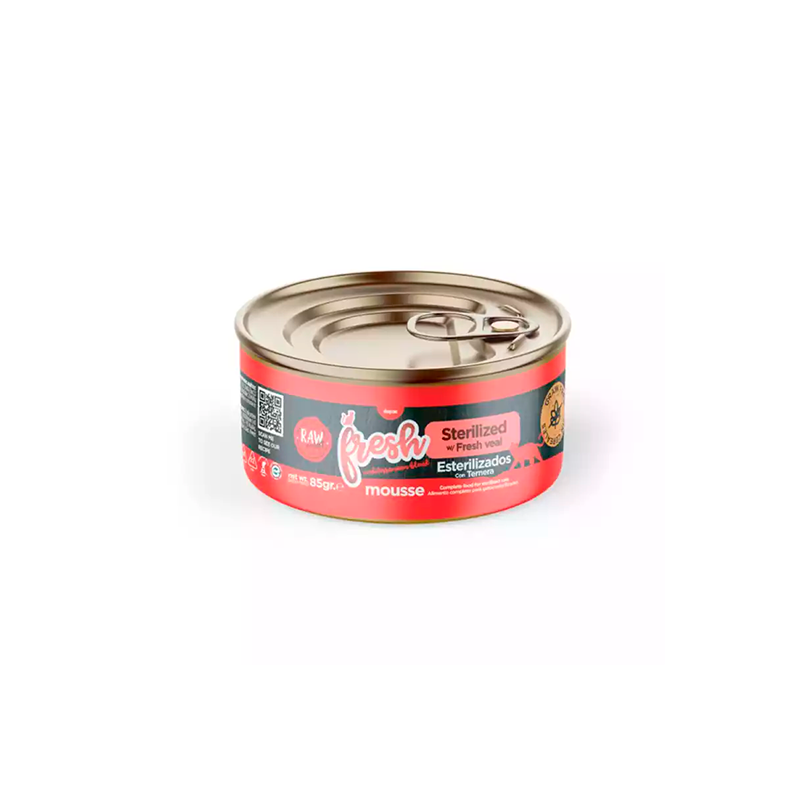 El Fresh Mousse de Conejo, ternera de Fresh Mediterranean Blend es un alimento completo formulado para cubrir las necesidades específicas de los gatos tras la esterilización, ayudando a mantener su peso ideal y bienestar general.