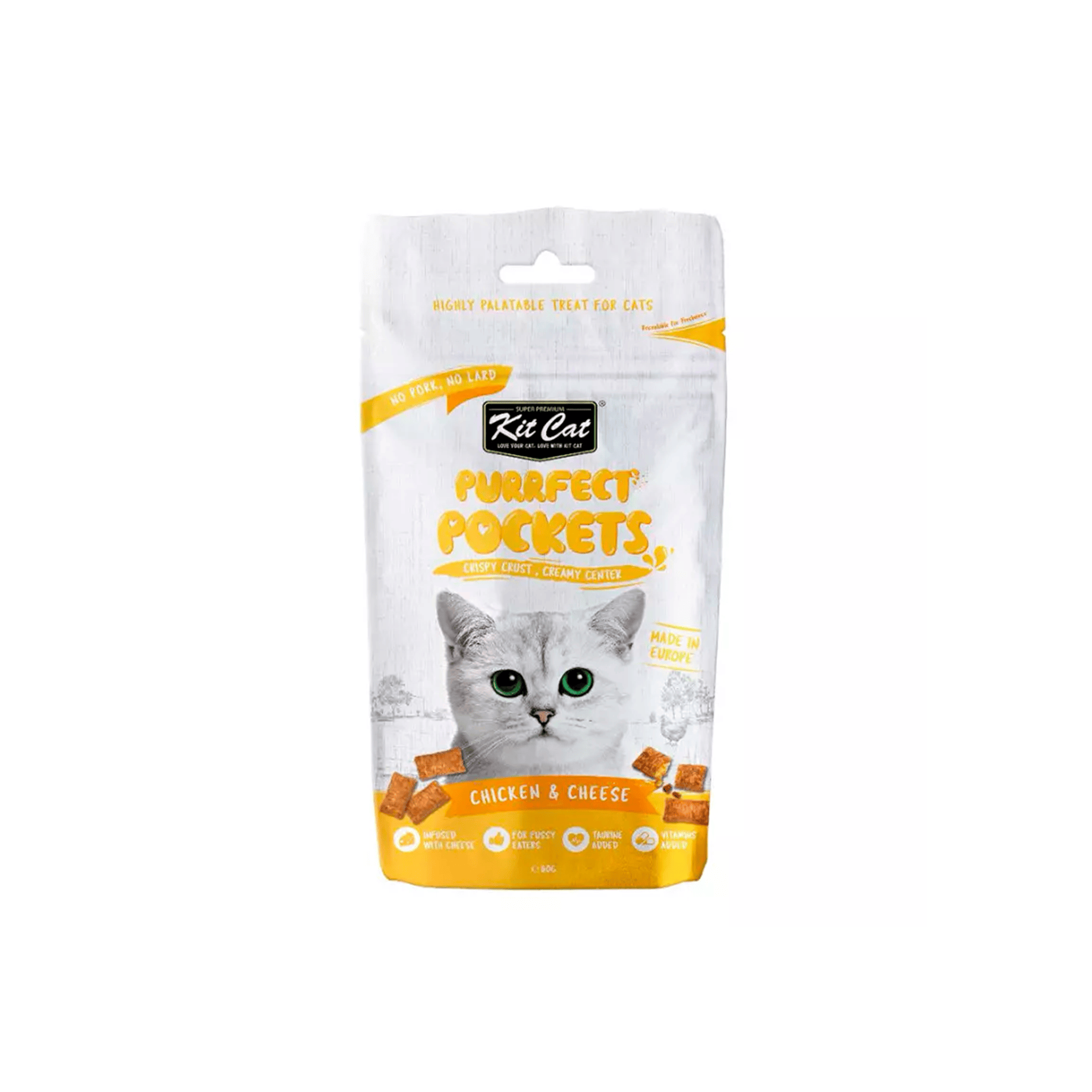 Premia a tus gatos con Purrfect Pockets, una golosina de doble textura, elaborada con ingredientes naturales, que garantiza la satisfacción en cada bocado.