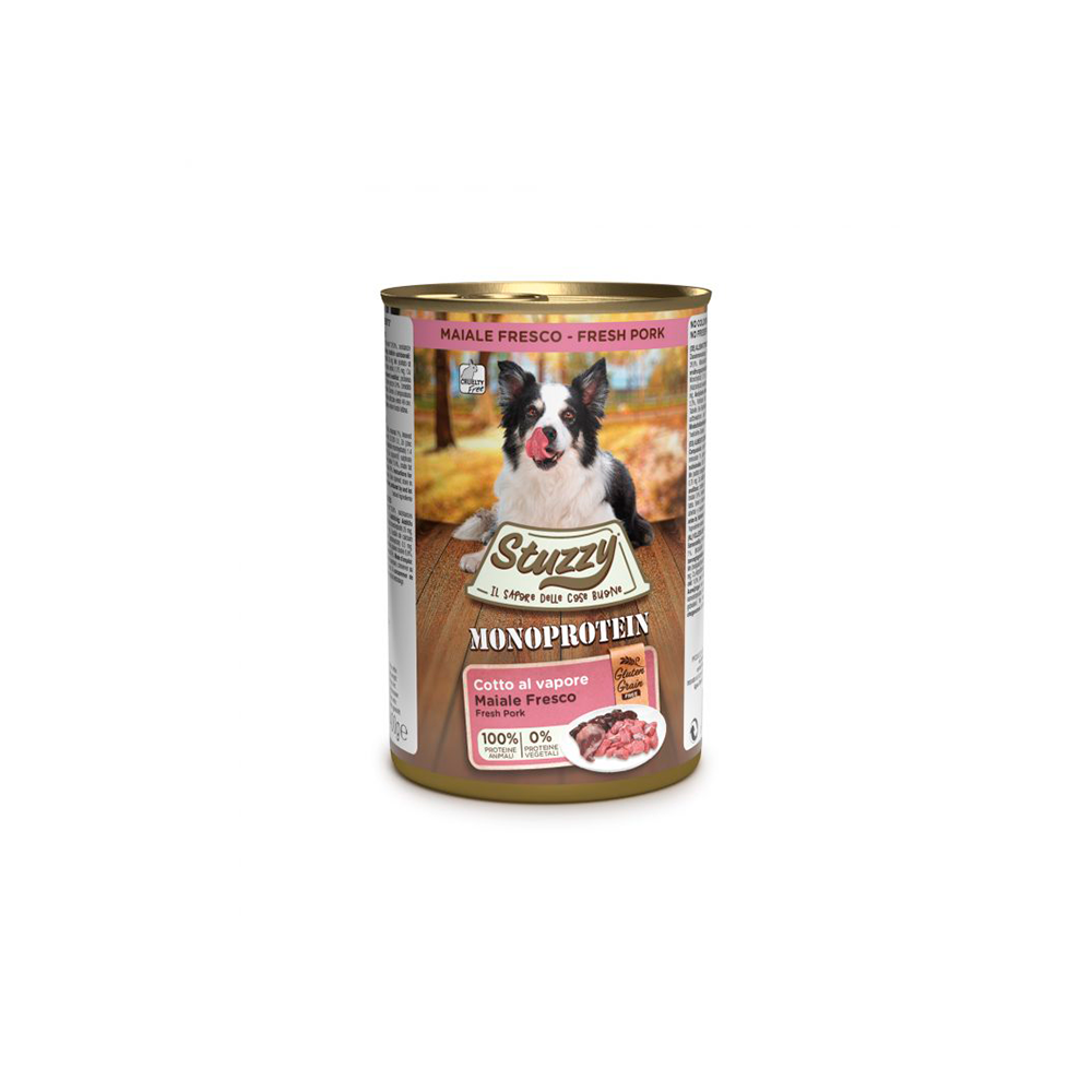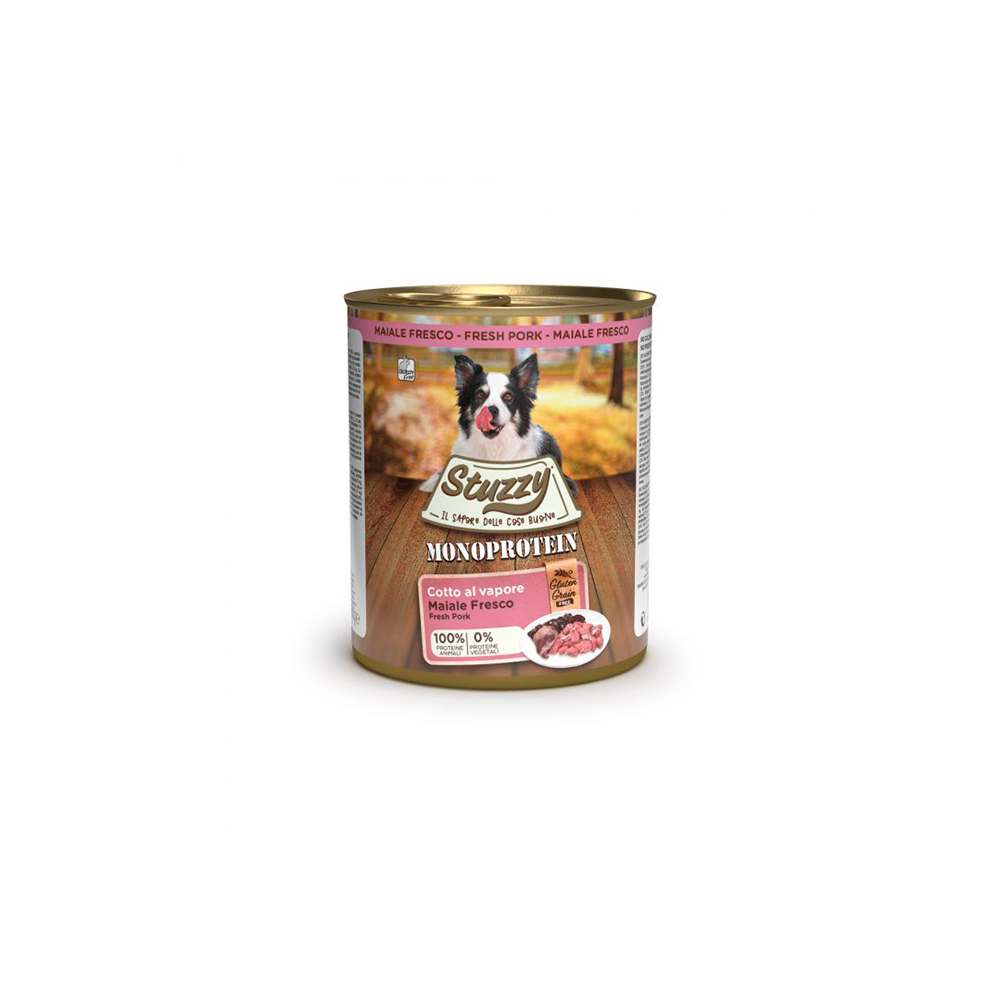 cerdo fresco 70%, caldo de cerdo 28,9%, sustancias minerales 1%, aceite de semillas de lino 0.1%.