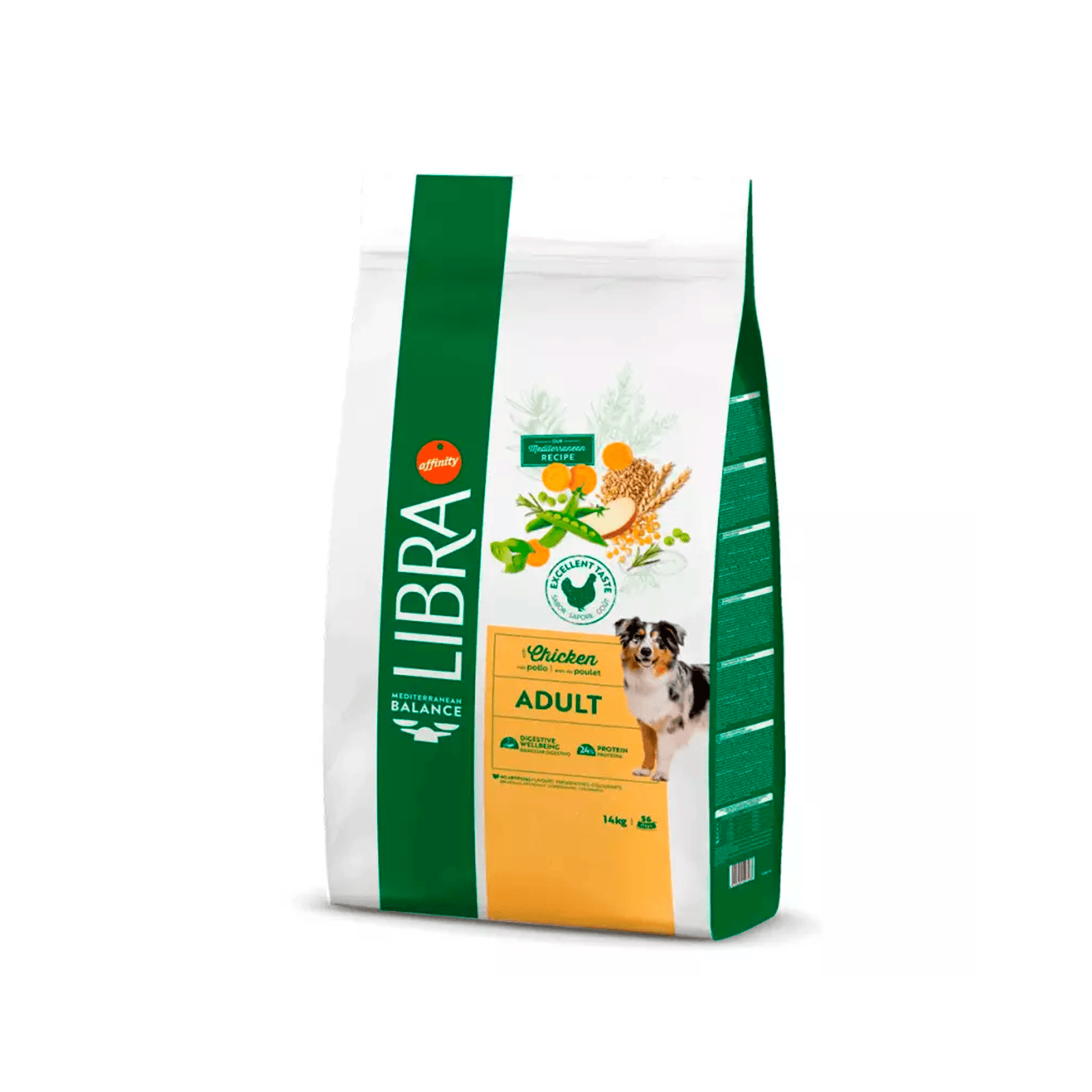 El pienso Libra para perros le ofrece una dieta completa y equilibrada con pollo para la alimentación diaria de perros adultos sanos de cualquier edad y tamaño. Es un alimento sabroso y nutricionalmente equilibrado que combina ingredientes de alta digestibilidad que garantizan que el perro tenga unos músculos fuertes y unos huesos y dientes sanos. Este es un alimento formulado por veterinarios especialistas en nutrición canina