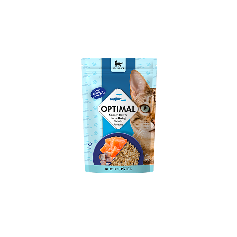 línea de comida húmeda para gatos de alta calidad, que no contiene cereales y es rica en proteínas. Esta comida está diseñada para satisfacer las necesidades nutricionales de los gatos, adaptándose a diferentes dietas, como la binutrición o como snack.