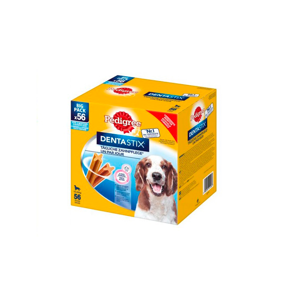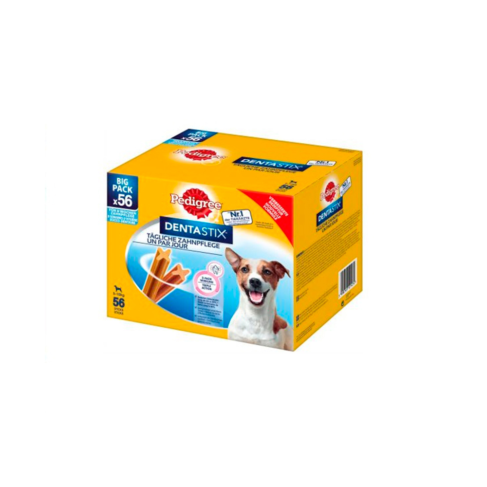 Pedigree Dentastix es una deliciosa golosina para perros en forma de barra estriada, diseñada especialmente para cuidar de la higiene bucal de tu perro