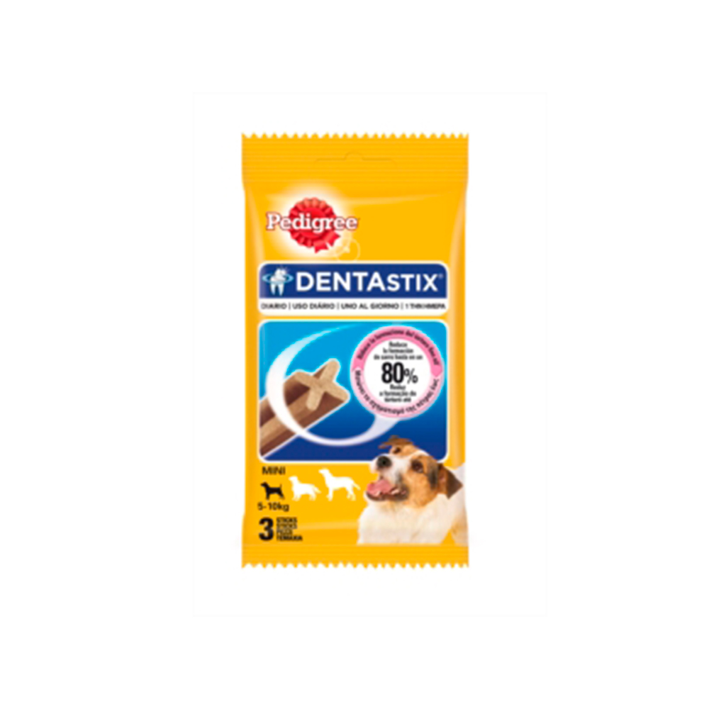 El 80% de los perros mayores de 3 años sufren enfermedades en las encías. La enfermedad periodontal es uno de los mayores problemas en la salud de los perros.Tu perro utiliza sus dientes no sólo para comer sino para llevar cosas, jugar…Sus dientes son para ellos tan importantes como para nosotros son las manos. Por eso, necesitamos cuidarlos. Está científicamente probado que un Pedigree Dentastix al día ayuda a reducir la formación de sarro hasta un 80%, previniendo así el riesgo de enfermedades periodontales. Y por su sabor único, además de mantener sus dientes sanos simplemente le encanta.