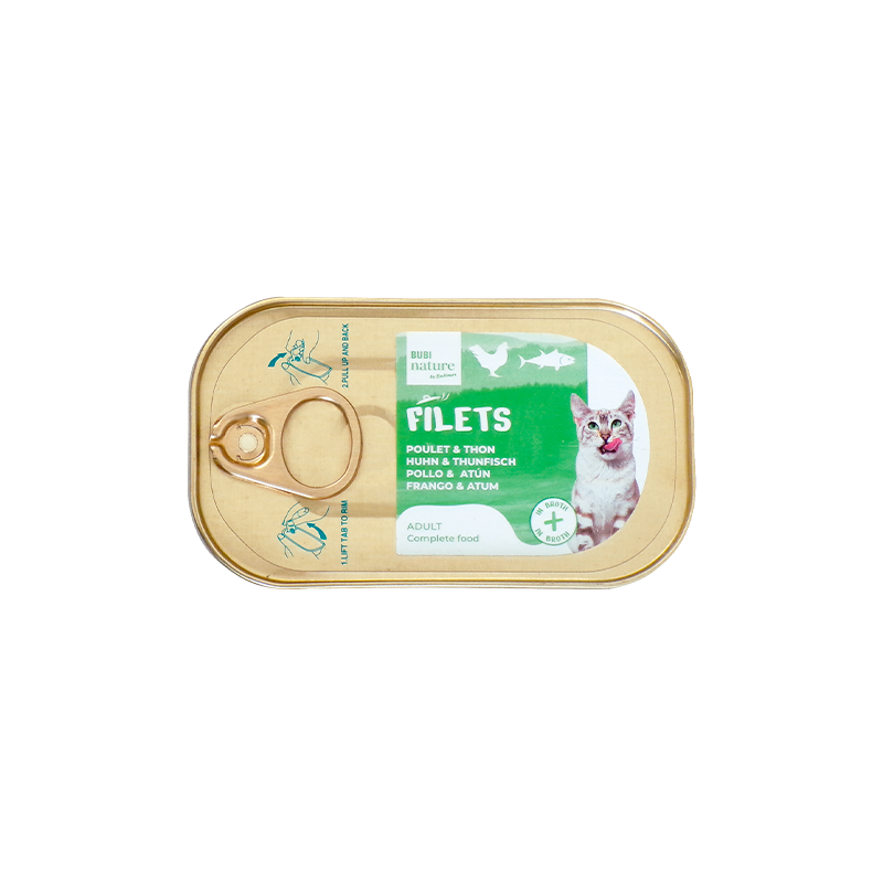 Atún 35%, pollo 4%, huevos de atún 4%, aceite de girasol, extractos de pescado, arroz 1%, minerales.