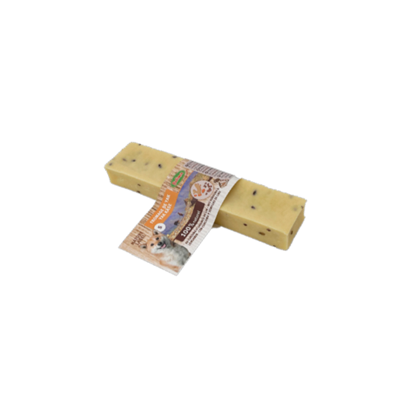 Snack natural para perros hecho de queso de yak con cúrcuma. Ideal para la limpieza de los dientes.
