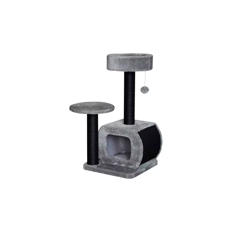 Este rascador cuenta con dos plataformas elevadas que brindan a tus gatos múltiples niveles para trepar, saltar y explorar. Estas plataformas también les permiten observar su entorno desde una posición elevada, lo que satisface su necesidad de tener un punto de observación y descanso.