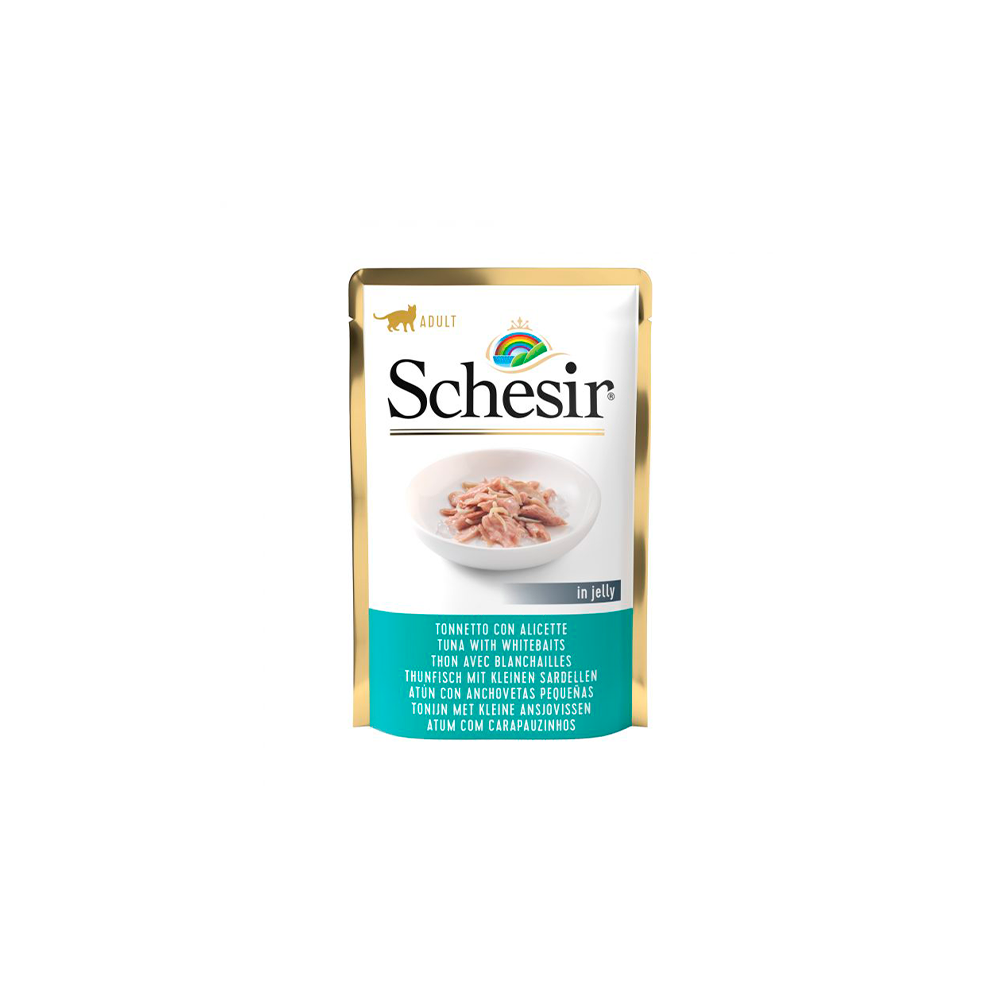 Este alimento complementario de Schesir se puede combinar perfectamente con el pienso para que la variedad de comida sea mayor. Los tiernos y jugosos trocitos de atún están acompañados de suave gelatina. La receta incluye solo ingredientes naturales de alta calidad. Además, no contiene colorantes ni conservantes artificiales. Las prácticas bolsitas de 85 g son raciones ideales y garantizan la máxima frescuta en cada comida.