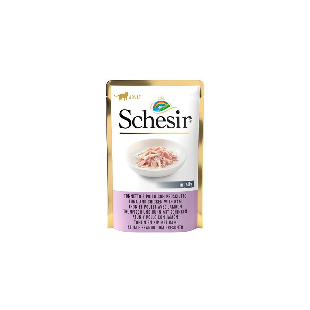 La comida húmeda de Schesir contiene solo los mejores trozos de pescado o carne en una gelatina excepcionalmente suave. Los ingredientes de alta calidad, cuidadosamente seleccionados, son 100 % naturales. Este excelente alimento para gatos contiene taurina, un aminoácido esencial para gatos que puede favorecer el funcionamiento normal del corazón y la vista. Gracias a la elaboración cuidadosa, conserva todo el sabor y los nutrientes.