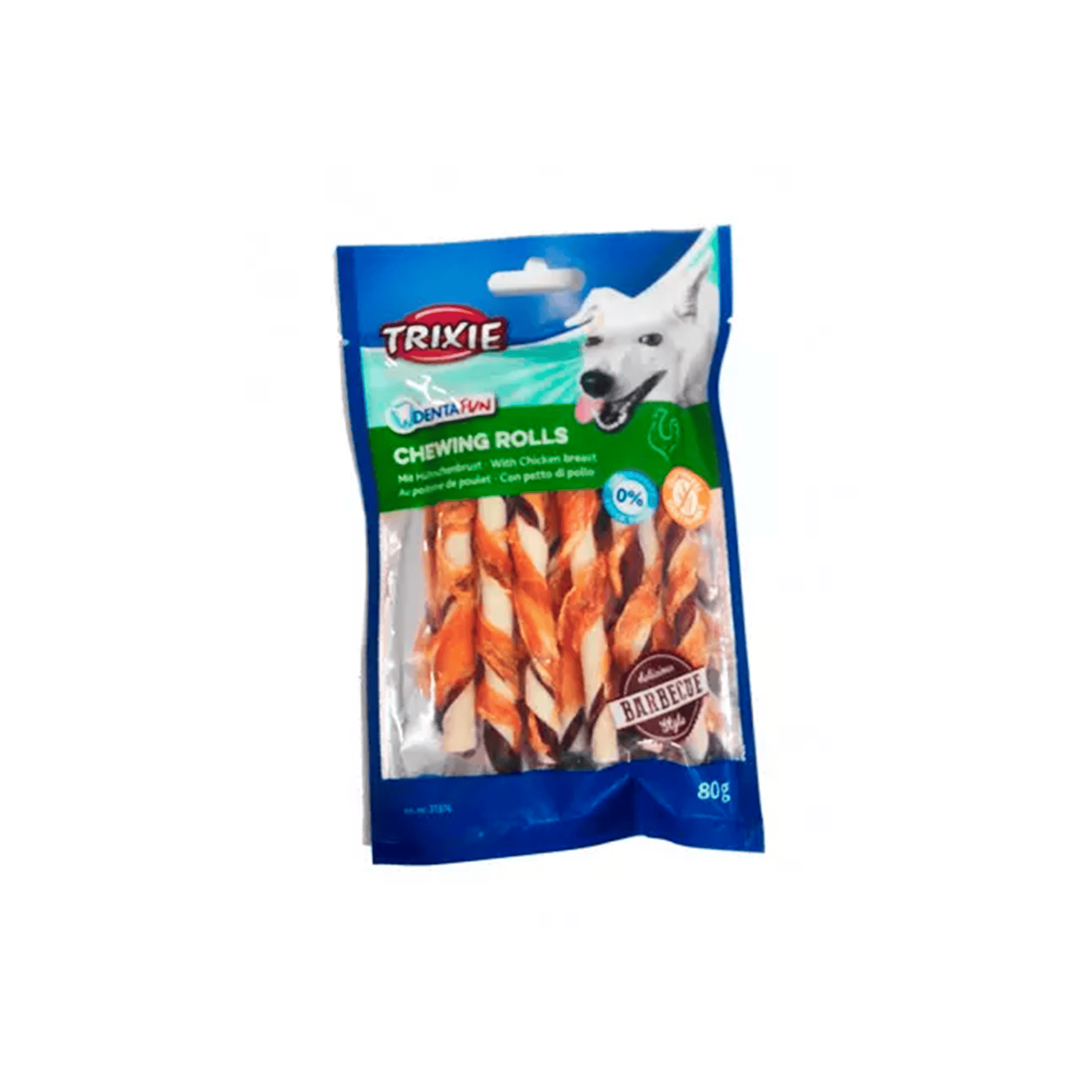 El pack contiene 10 barritas dentales masticables de pollo con sabor barbacoa.