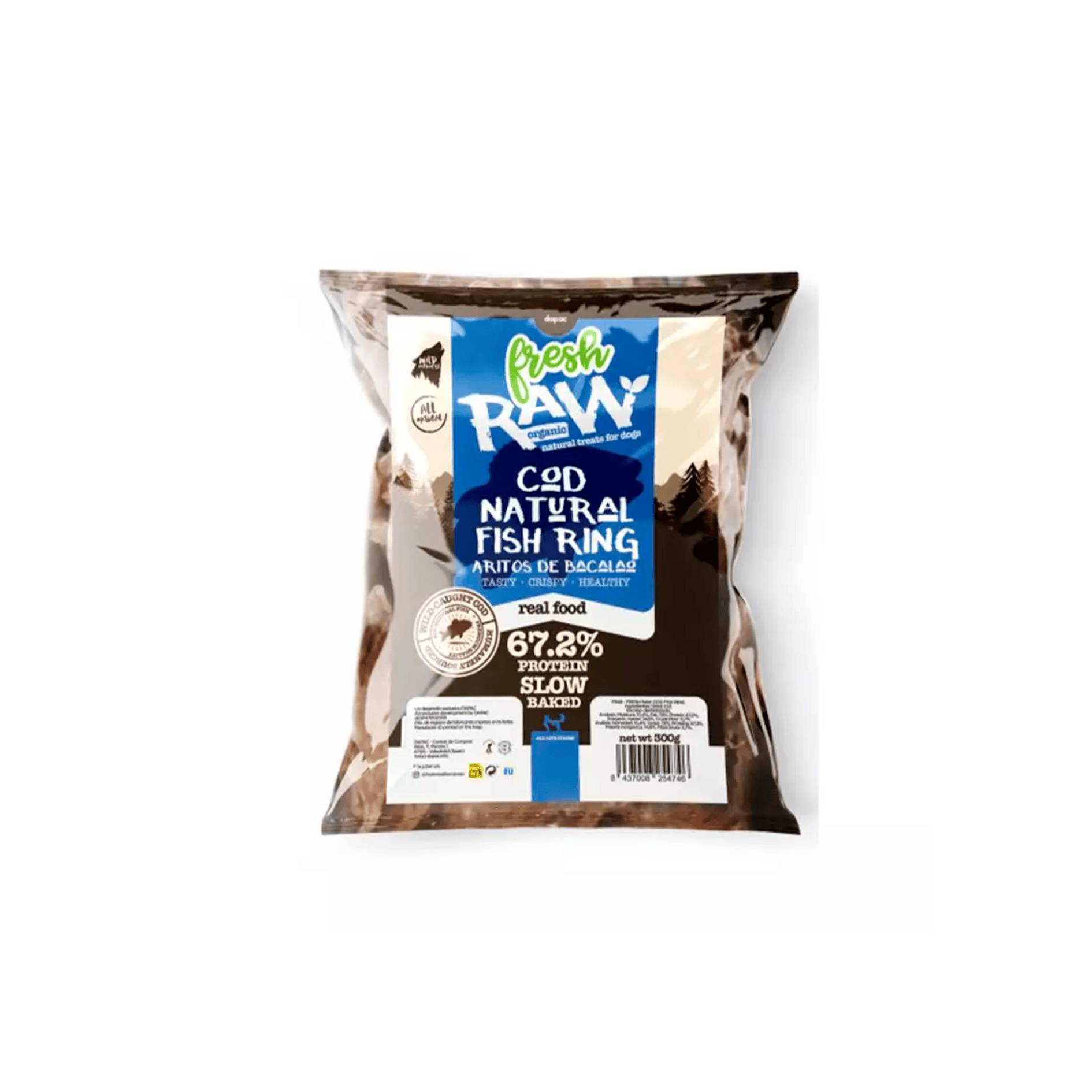 Fresh Raw Anillo de Pescado 7cm Snack Natural y Saludable. Los anillos de pescado Fresh Raw son mucho más que un simple premio: son un complemento nutritivo que favorece la salud bucodental de tu perro mientras disfruta de un sabor irresistible.