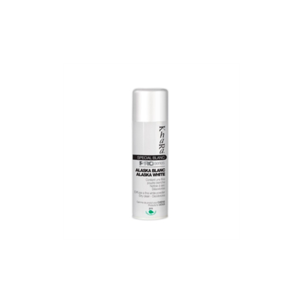 Pulverizador blanqueador y limpiador para perro Khara . Limpia en seco , desodoriza y blanquea .